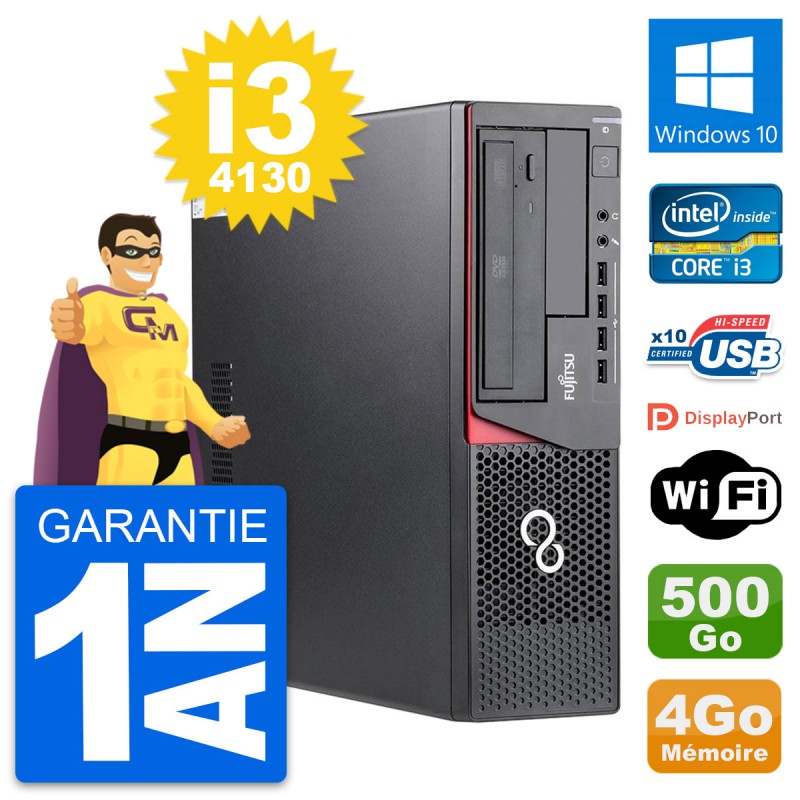 PC Fujitsu Esprimo E720 DT - Intel Core i3-4130 3.4 Ghz (3 Mo) - 4 Go DDR3 - Disque Dur 3,5" 500 Go - Graveur DVD - Clef Wifi USB - Windows 10 - Garantie 1 an.