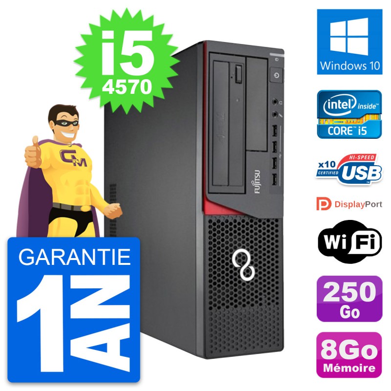 PC Fujitsu Esprimo E720 DT - Intel Core i5-4570 3.2 Ghz (6 Mo) - 8 Go DDR3 - Disque Dur 3,5" 250 Go - Graveur DVD - Clef Wifi USB - Windows 10 - Garantie 1 an.