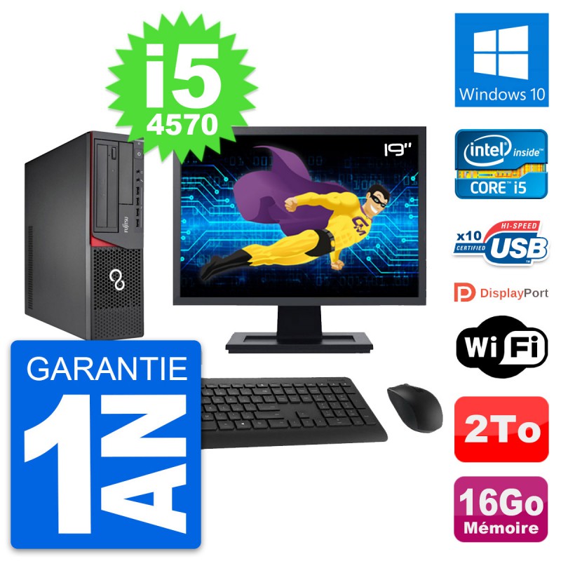 PC Fujitsu E720 DT - Intel Core i5-4570 3.2 Ghz (6 Mo) - 16 Go DDR3 - Disque Dur 3,5" 2 To - Graveur DVD - Clef Wifi USB - Windows 10 - Livré avec Ecran 19" + clavier + souris (Marques et modèles variables) - Garantie 1 an.