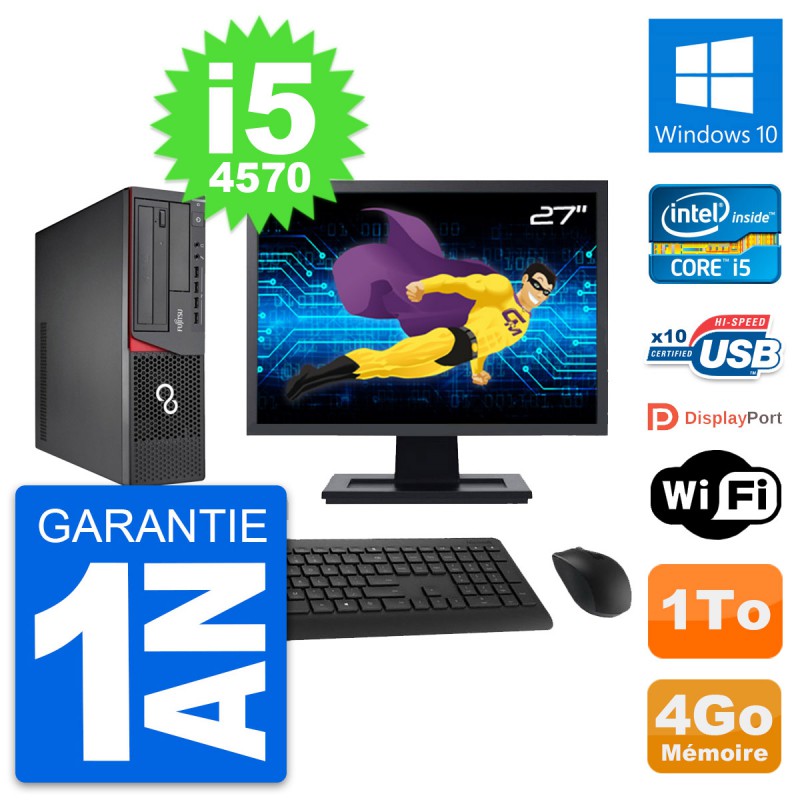 PC Fujitsu E720 DT - Intel Core i5-4570 3.2 Ghz (6 Mo) - 4 Go DDR3 - Disque Dur 3,5" 1 To - Graveur DVD - Clef Wifi USB - Windows 10 - Livré avec Ecran 27" + clavier + souris (Marques et modèles variables) - Garantie 1 an.