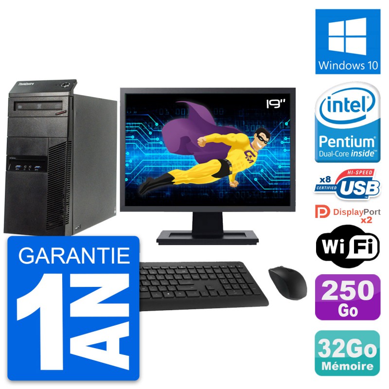 PC Tour Lenovo M83 Ecran 19" Intel G3220 RAM 32Go Disque 250Go Windows 10 Wifi