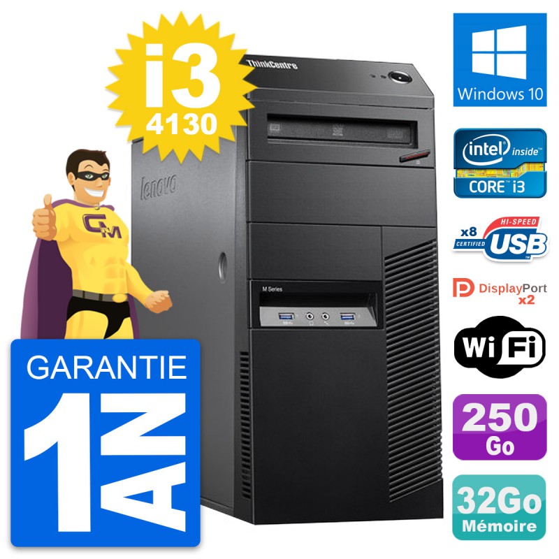 PC Tour Lenovo ThinkCentre M83 i3-4130 RAM 32Go Disque Dur 250Go Windows 10 Wifi