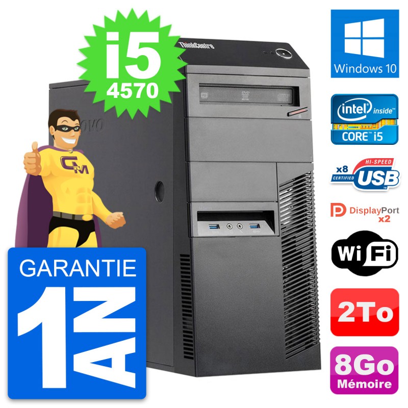 PC Tour Lenovo ThinkCentre M83 Intel i5-4570 RAM 8Go Disque 2To Windows 10 Wifi