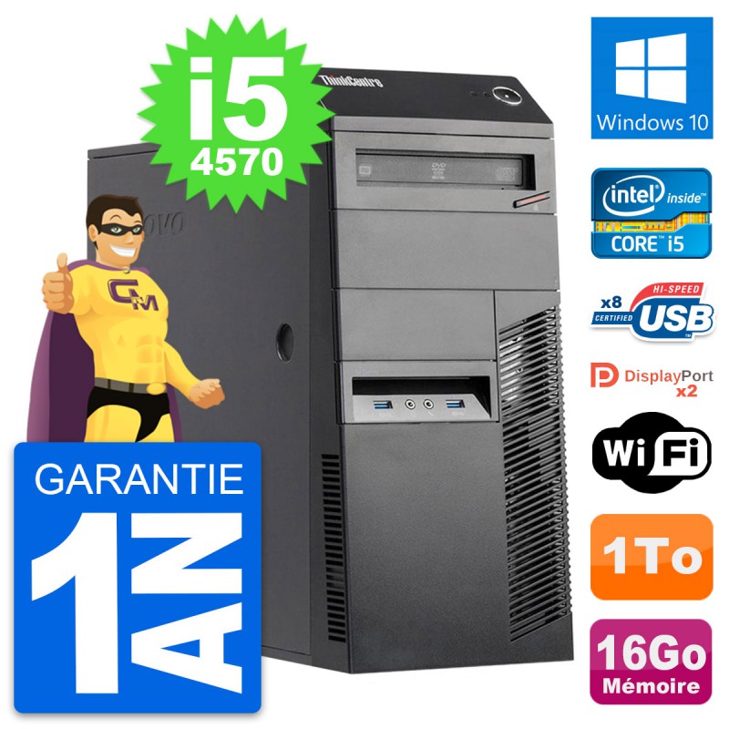 PC Tour Lenovo ThinkCentre M83 Intel i5-4570 RAM 16Go Disque 1To Windows 10 Wifi
