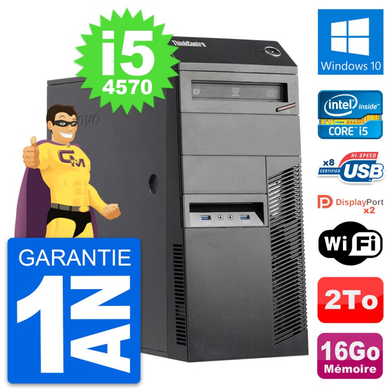 PC Tour Lenovo ThinkCentre M83 Intel i5-4570 RAM 16Go Disque 2To Windows 10 Wifi