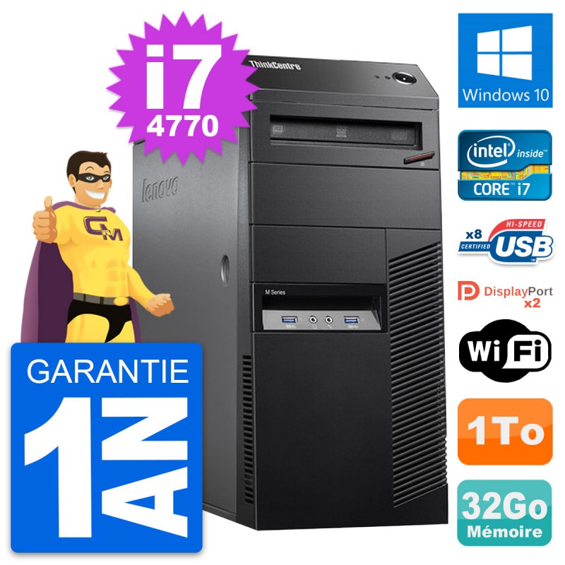 PC Tour Lenovo ThinkCentre M83 Intel i7-4770 RAM 32Go Disque 1To Windows 10 Wifi