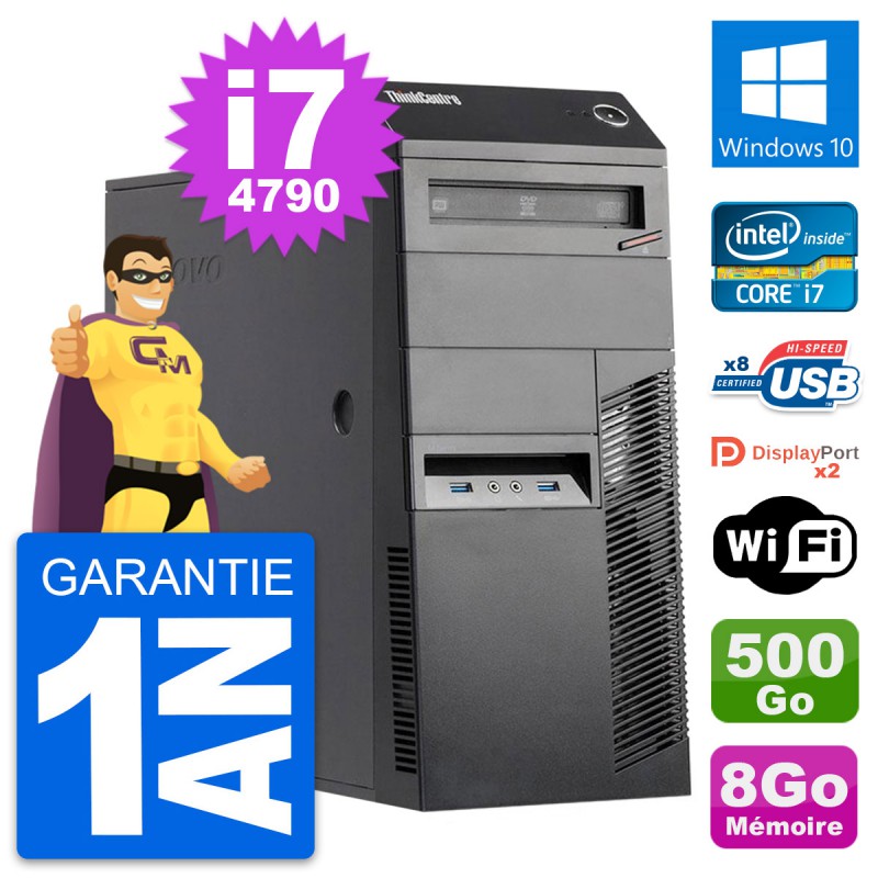 PC Tour Lenovo ThinkCentre M83 Core i7-4790 RAM 8Go Disque 500Go Windows 10 Wifi