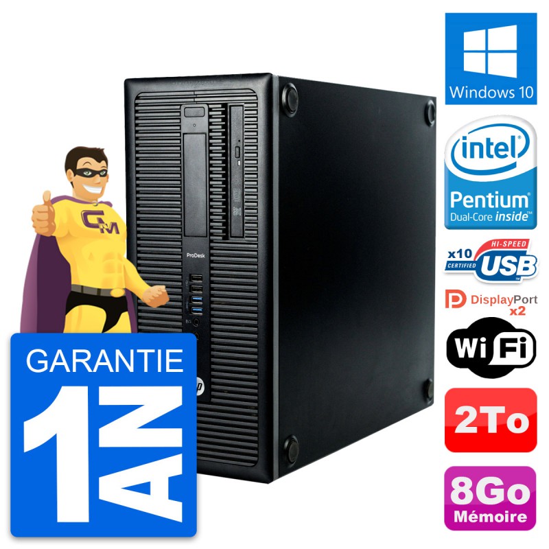 PC Tour HP ProDesk 600 G1 - Intel Pentium G3220 3.0 Ghz (3 Mo) - 8 Go DDR3 - Disque Dur 3,5" 2 To - Graveur DVD - Clef Wifi USB - Windows 10 - Garantie 1 an.