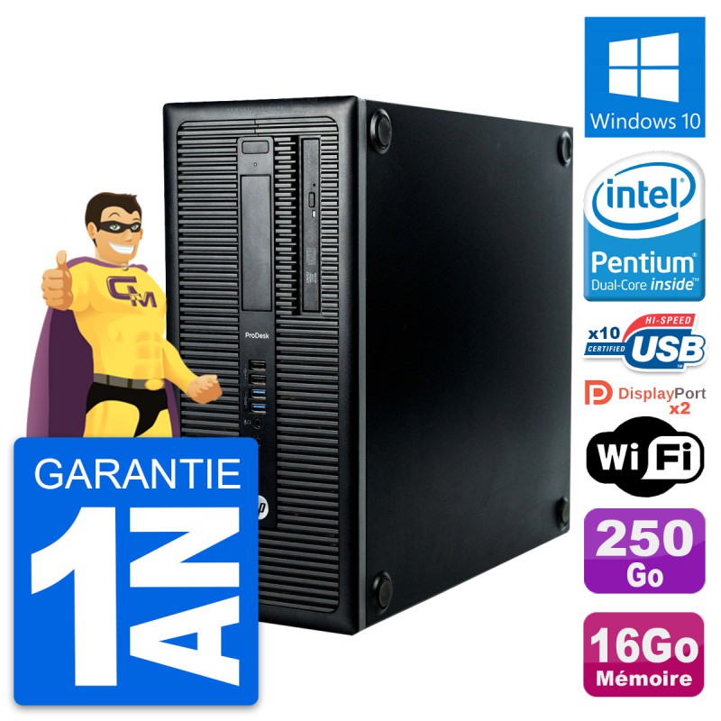 PC Tour HP ProDesk 600 G1 - Intel Pentium G3220 3.0 Ghz (3 Mo) - 16 Go DDR3 - Disque Dur 3,5" 250 Go - Graveur DVD - Clef Wifi USB - Windows 10 - Garantie 1 an.