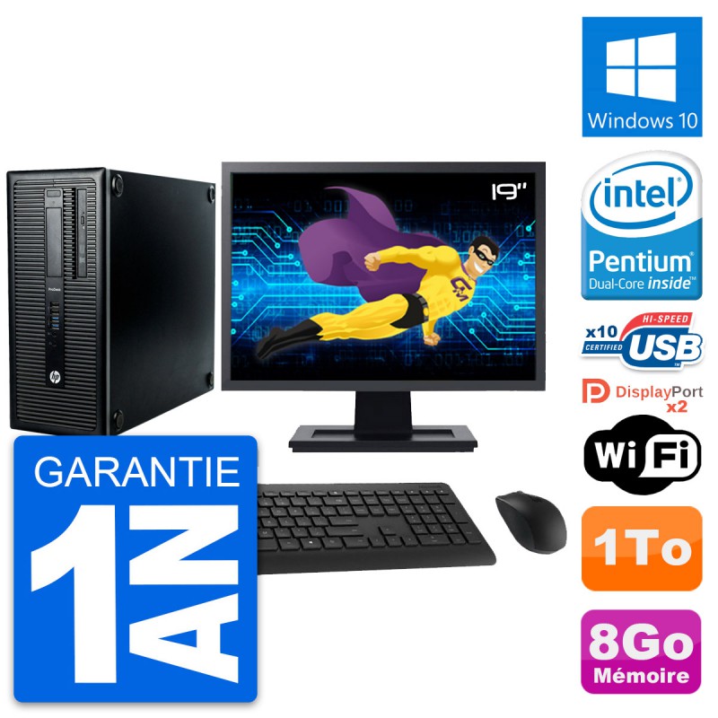 PC Tour HP ProDesk 600 G1 - Intel Pentium G3220 3.0 Ghz (3 Mo) - 8 Go DDR3 - Disque Dur 3,5" 1 To - Graveur DVD - Clef Wifi USB - Windows 10 - Livré avec Ecran 19" + clavier + souris (Marques et modèles variables) - Garantie 1 an.