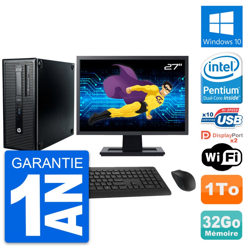 PC Tour HP ProDesk 600 G1 Ecran 27" G3220 RAM 32Go Disque 1To Windows 10 Wifi