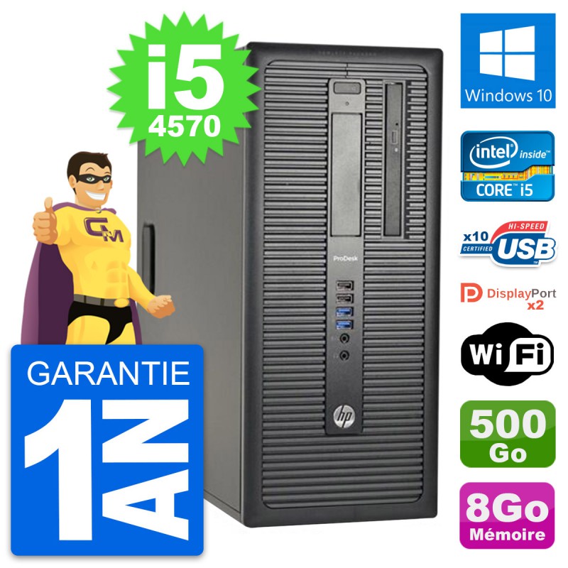 PC Tour HP ProDesk 600 G1 - Intel Core i5-4570 3.2 Ghz (6 Mo) - 8 Go DDR3 - Disque Dur 3,5" 500 Go - Graveur DVD - Clef Wifi USB - Windows 10 - Garantie 1 an.