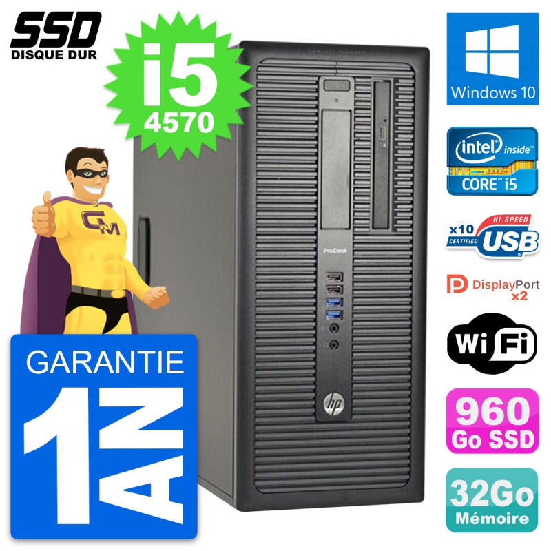 PC Tour HP ProDesk 600 G1 - Intel Core i5-4570 3.2 Ghz (6 Mo) - 32 Go DDR3 - Disque Dur SSD 960 Go - Graveur DVD - Clef Wifi USB - Windows 10 - Garantie 1 an.