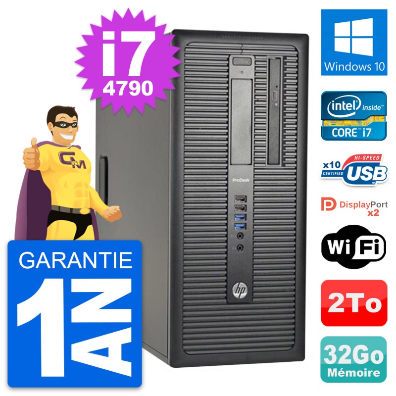 PC Tour HP ProDesk 600 G1 - Intel Core i7-4790 3.6 Ghz (8 Mo) - 32 Go DDR3 - Disque Dur 3,5" 2 To - Graveur DVD - Clef Wifi USB - Windows 10 - Garantie 1 an.