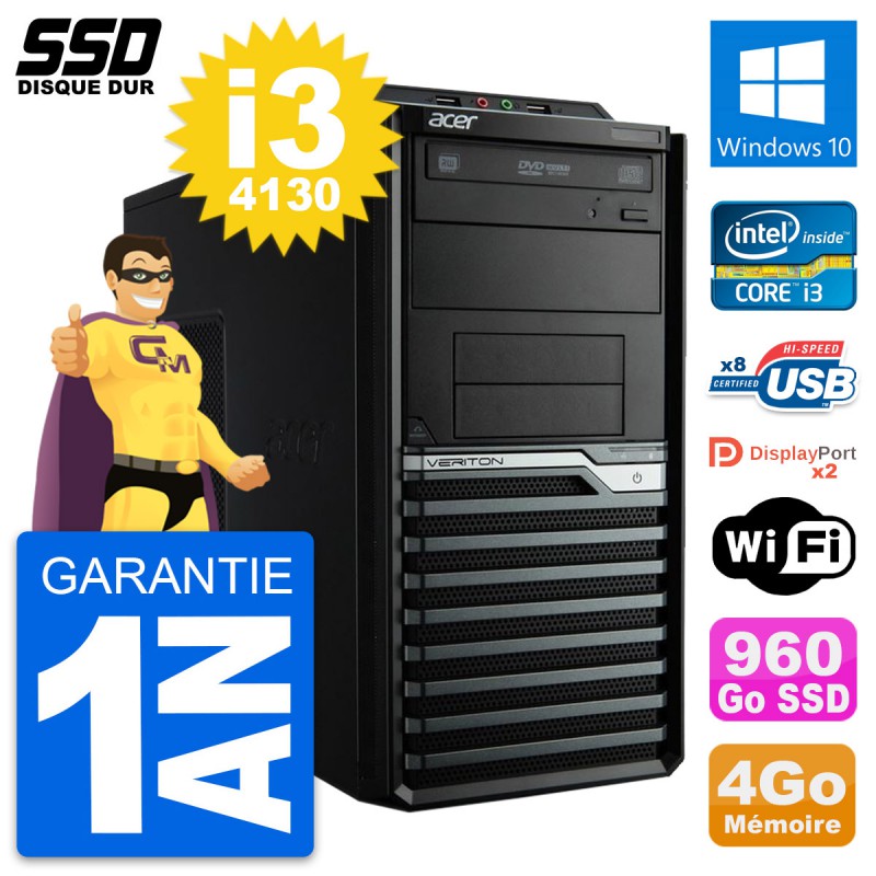 PC Tour Acer Veriton M4630G - Intel Core i3-4130 3.4 Ghz (3 Mo) - 4 Go DDR3 - Disque Dur SSD 960 Go - Graveur DVD - Clef Wifi USB - Windows 10 - Garantie 1 an.