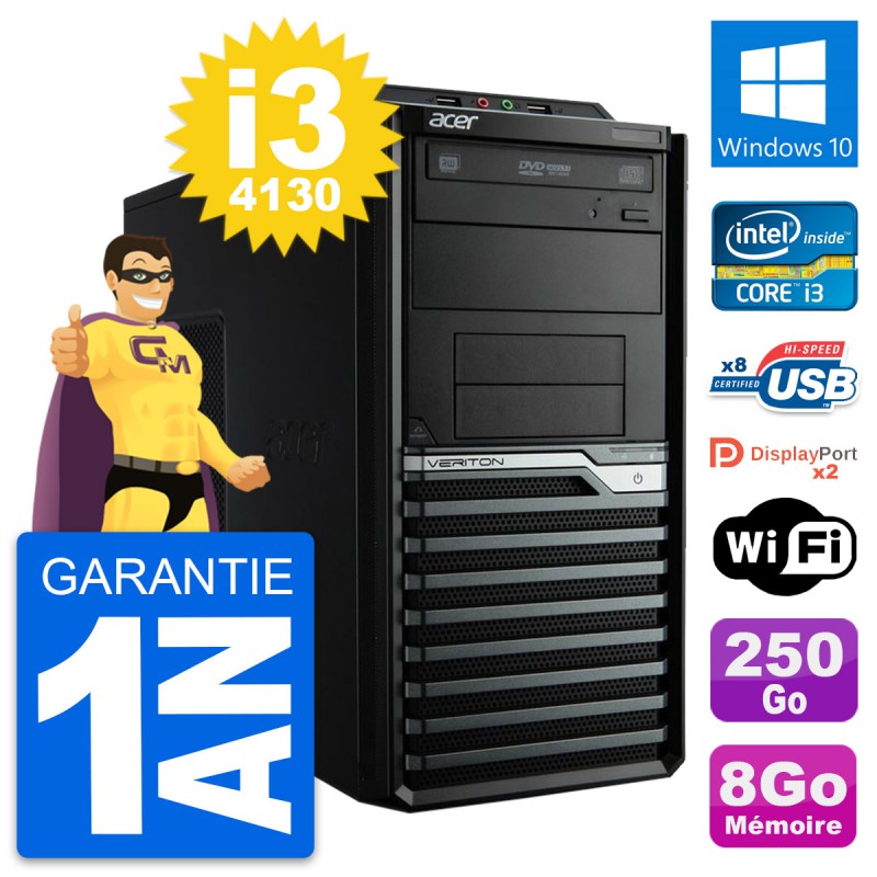PC Tour Acer Veriton M4630G - Intel Core i3-4130 3.4 Ghz (3 Mo) - 8 Go DDR3 - Disque Dur 3,5" 250 Go - Graveur DVD - Clef Wifi USB - Windows 10 - Garantie 1 an.