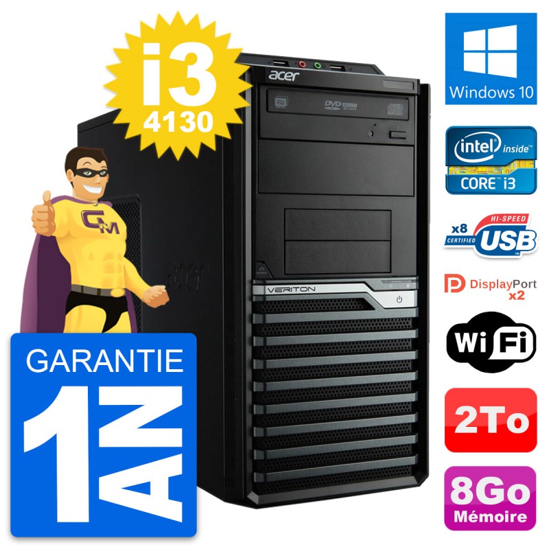 PC Tour Acer Veriton M4630G - Intel Core i3-4130 3.4 Ghz (3 Mo) - 8 Go DDR3 - Disque Dur 3,5" 2 To - Graveur DVD - Clef Wifi USB - Windows 10 - Garantie 1 an.