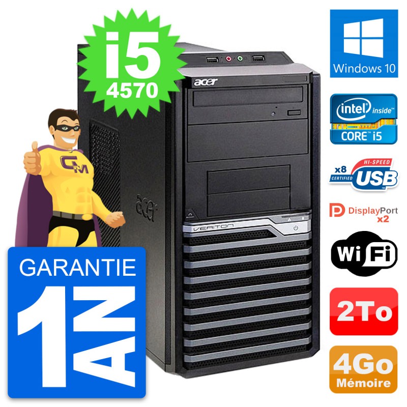 PC Tour Acer Veriton M4630G - Intel Core i5-4570 3.2 Ghz (6 Mo) - 4 Go DDR3 - Disque Dur 3,5" 2 To - Graveur DVD - Clef Wifi USB - Windows 10 - Garantie 1 an.
