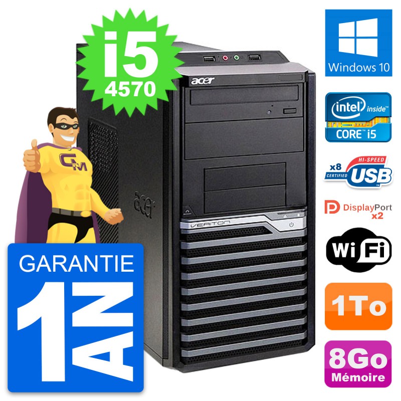 PC Tour Acer Veriton M4630G - Intel Core i5-4570 3.2 Ghz (6 Mo) - 8 Go DDR3 - Disque Dur 3,5" 1 To - Graveur DVD - Clef Wifi USB - Windows 10 - Garantie 1 an.