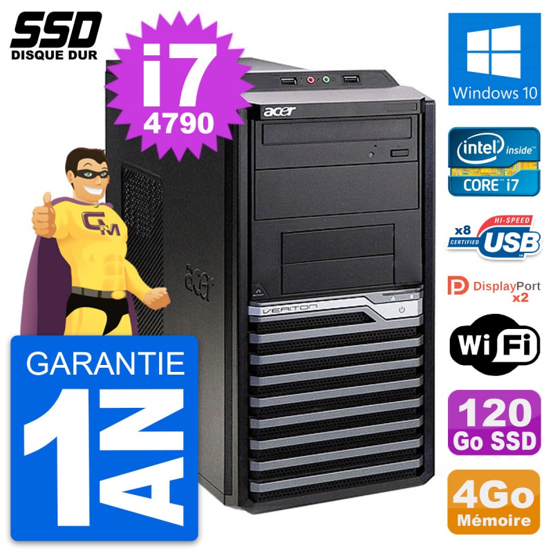 PC Tour Acer Veriton M4630G - Intel Core i7-4790 3.6 Ghz (8 Mo) - 4 Go DDR3 - Disque Dur SSD 120 Go - Graveur DVD - Clef Wifi USB - Windows 10 - Garantie 1 an.