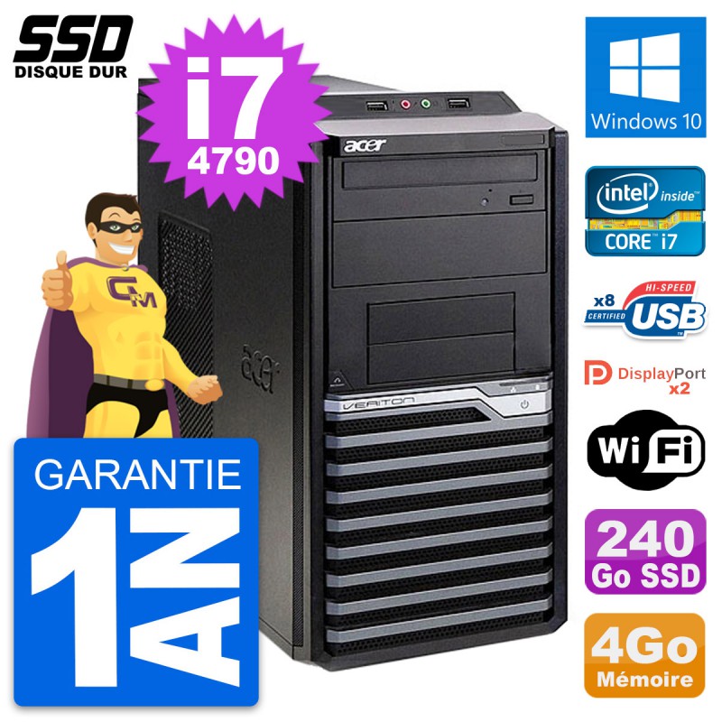 PC Tour Acer Veriton M4630G - Intel Core i7-4790 3.6 Ghz (8 Mo) - 4 Go DDR3 - Disque Dur SSD 240 Go - Graveur DVD - Clef Wifi USB - Windows 10 - Garantie 1 an.
