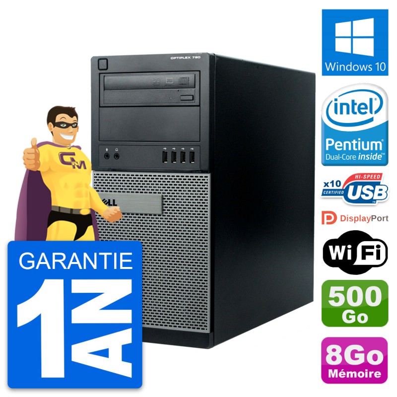 PC Tour Dell OptiPlex 790 MT - Intel Pentium Dual-Core G630 2.7 Ghz (3 Mo) - 8 Go DDR3 - Disque Dur 3,5" 500 Go - Graveur DVD - Clef Wifi USB - Windows 10 - Garantie 1 an.