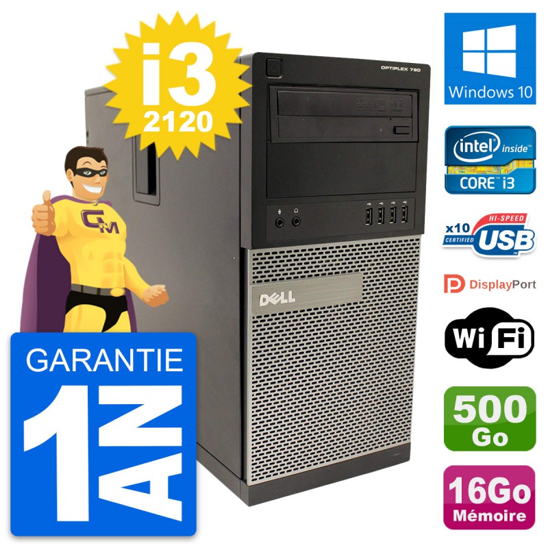 PC Tour Dell OptiPlex 790 MT Intel i3-2120 RAM 16Go Disque 500Go Windows 10 Wifi