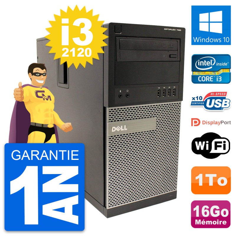 PC Tour Dell OptiPlex 790 MT Intel i3-2120 RAM 16Go Disque 1To Windows 10 Wifi