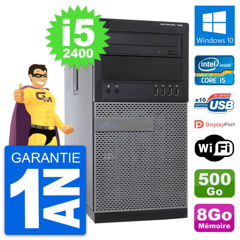 PC Tour Dell OptiPlex 790 MT - Intel Core i5-2400 3.1 Ghz (6 Mo) - 8 Go DDR3 - Disque Dur 3,5" 500 Go - Graveur DVD - Clef Wifi USB - Windows 10 - Garantie 1 an.