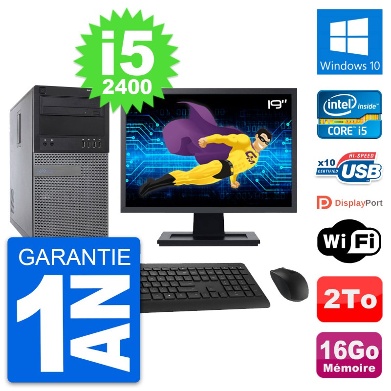 PC Tour Dell 790 MT - Intel Core i5-2400 3.1 Ghz (6 Mo) - 16 Go DDR3 - Disque Dur 3,5" 2 To - Graveur DVD - Clef Wifi USB - Windows 10 - Livré avec Ecran 19" + clavier + souris (Marques et modèles variables) - Garantie 1 an.