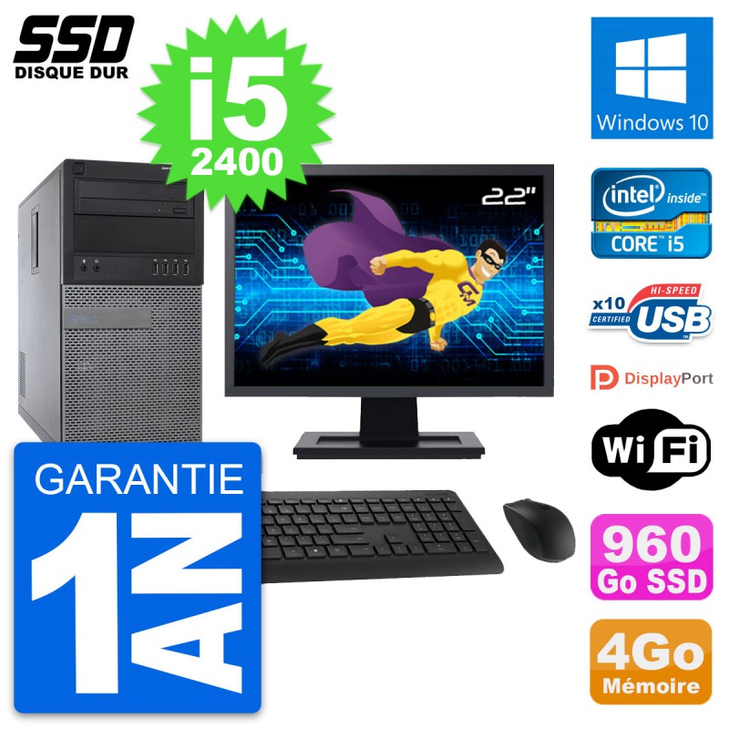 PC Tour Dell 790 MT - Intel Core i5-2400 3.1 Ghz (6 Mo) - 4 Go DDR3 - Disque Dur SSD 960 Go - Graveur DVD - Clef Wifi USB - Windows 10 - Livré avec Ecran 22" + clavier + souris (Marques et modèles variables) - Garantie 1 an.