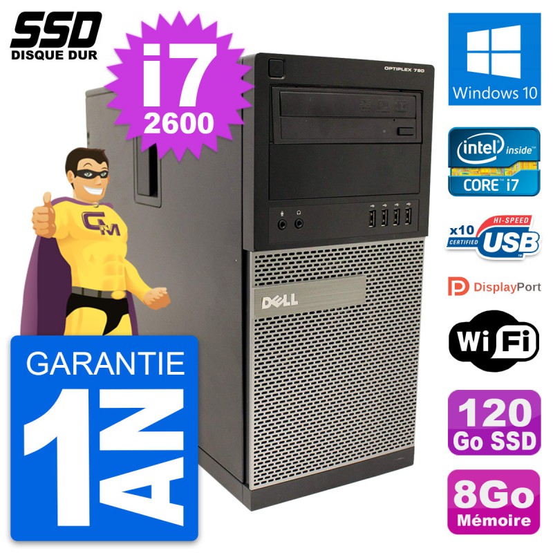 PC Tour Dell OptiPlex 790 MT - Intel Core i7-2600 3.4 Ghz (8 Mo) - 8 Go DDR3 - Disque Dur SSD 120 Go - Graveur DVD - Clef Wifi USB - Windows 10 - Garantie 1 an.
