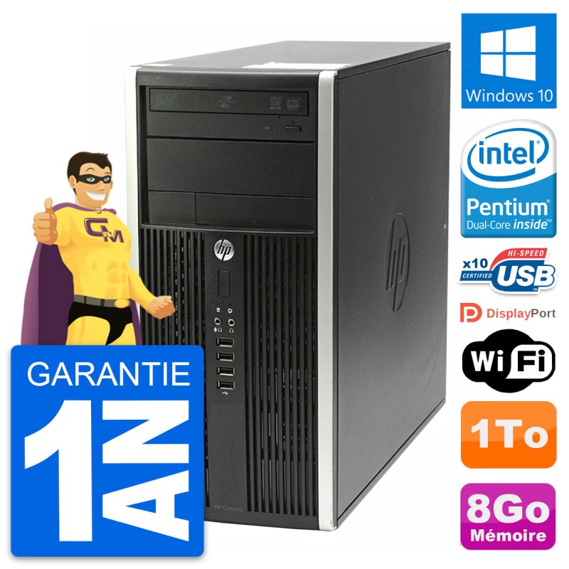 PC Tour HP Compaq Pro 6200 CMT (Micro Tour) - Intel Pentium Dual-Core G630 2.7 Ghz (3 Mo) - 8 Go DDR3 - Disque Dur 3,5" 1 To - Graveur DVD - Clef Wifi USB - Windows 10 - Garantie 1 an.