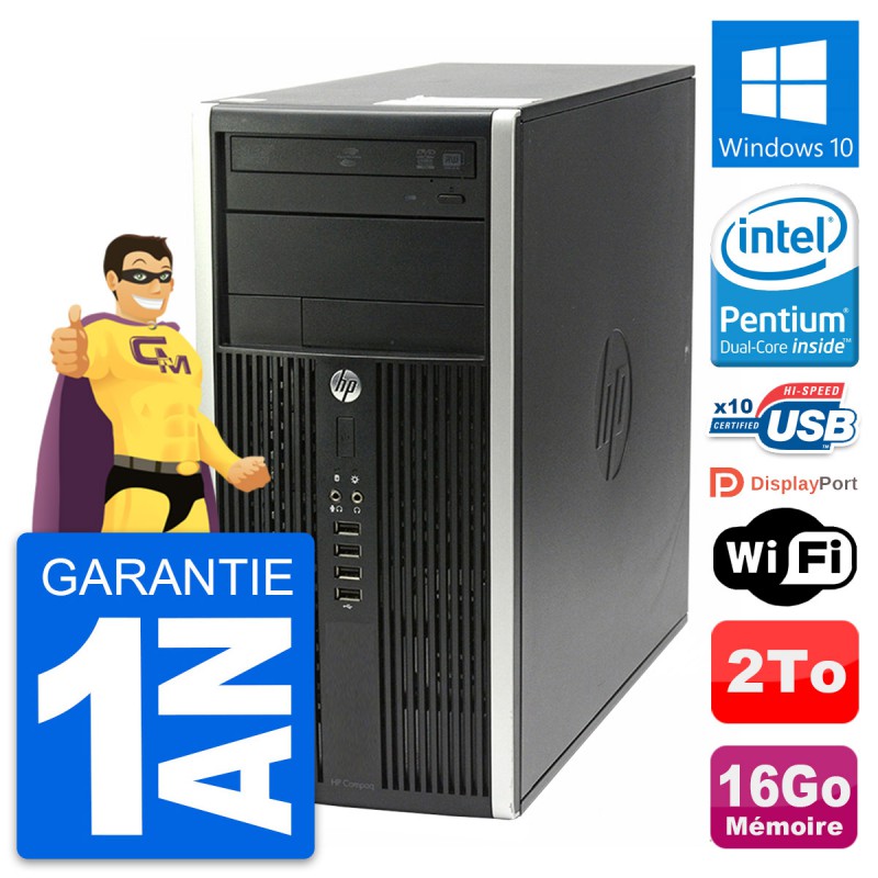 PC Tour HP Compaq Pro 6200 CMT (Micro Tour) - Intel Pentium Dual-Core G630 2.7 Ghz (3 Mo) - 16 Go DDR3 - Disque Dur 3,5" 2 To - Graveur DVD - Clef Wifi USB - Windows 10 - Garantie 1 an.