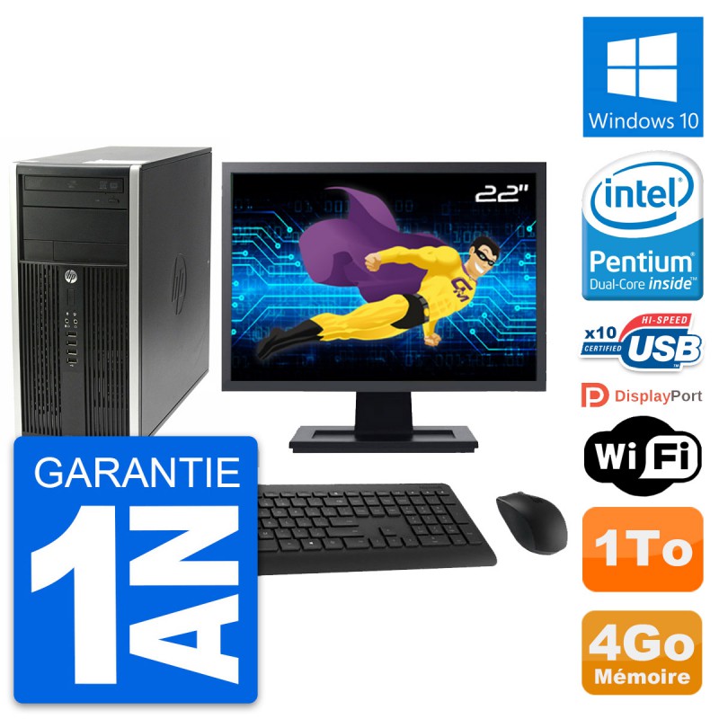 PC HP Pro 6200 CMT (Micro Tour) - Intel Pentium Dual-Core G630 2.7 Ghz (3 Mo) - 4 Go DDR3 - Disque Dur 3,5" 1 To - Graveur DVD - Clef Wifi USB - Windows 10 - Livré avec Ecran 22" + clavier + souris (Marques et modèles variables) - Garantie 1 an.