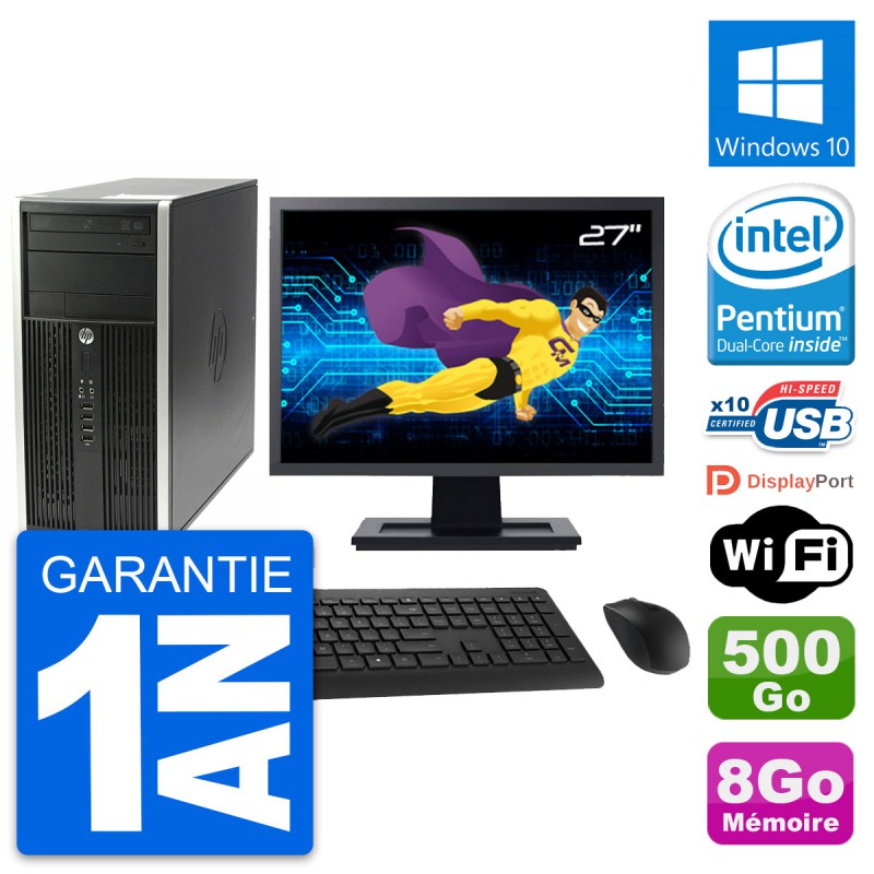 PC HP Pro 6200 CMT (Micro Tour) - Intel Pentium Dual-Core G630 2.7 Ghz (3 Mo) - 8 Go DDR3 - Disque Dur 3,5" 500 Go - Graveur DVD - Clef Wifi USB - Windows 10 - Livré avec Ecran 27" + clavier + souris (Marques et modèles variables) - Garantie 1 an.