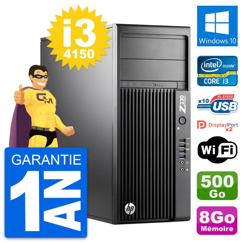 PC Tour HP WorkStation Z230 - Intel Core i3-4150 3.5 Ghz (3 Mo) - 8 Go DDR3 - Disque Dur 3,5" 500 Go - Graveur DVD - Clef Wifi USB - Windows 10 - Garantie 1 an.