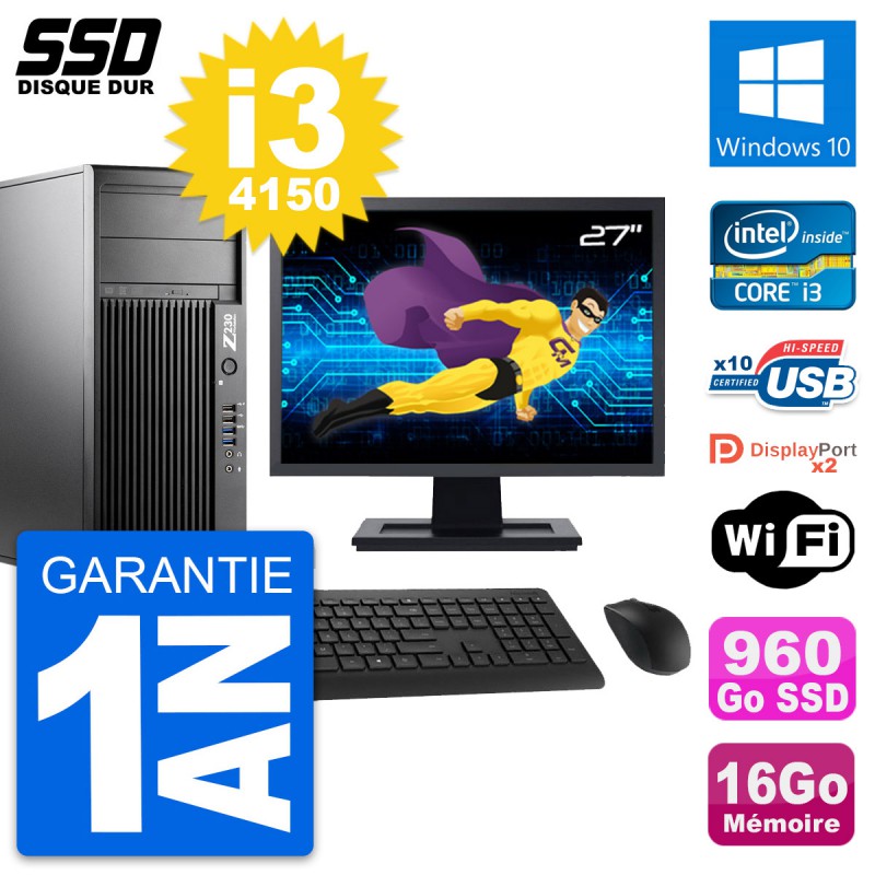 PC Tour HP Z230 Ecran 27" Intel Core i3-4150 RAM 16Go SSD 960Go Windows 10 Wifi