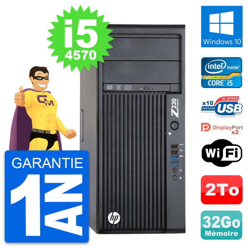 PC Tour HP WorkStation Z230 - Intel Core i5-4570 3.2 Ghz (6 Mo) - 32 Go DDR3 - Disque Dur 3,5" 2 To - Graveur DVD - Clef Wifi USB - Windows 10 - Garantie 1 an.