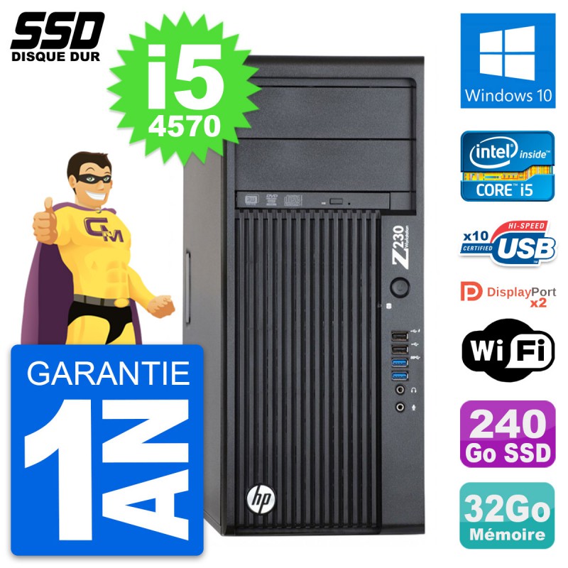 PC Tour HP WorkStation Z230 Core i5-4570 RAM 32Go SSD 240Go Windows 10 Wifi