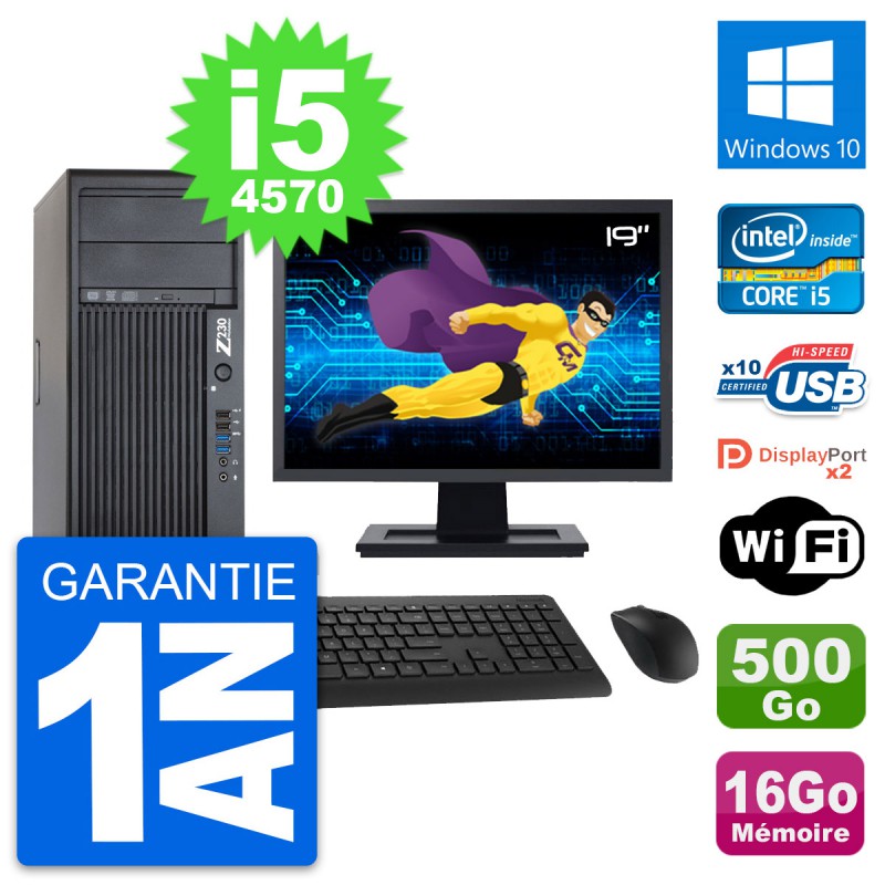 PC Tour HP WorkStation Z230 - Intel Core i5-4570 3.2 Ghz (6 Mo) - 16 Go DDR3 - Disque Dur 3,5" 500 Go - Graveur DVD - Clef Wifi USB - Windows 10 - Livré avec Ecran 19" + clavier + souris (Marques et modèles variables) - Garantie 1 an.