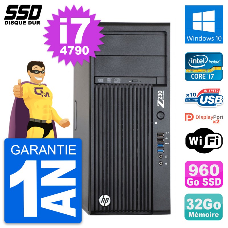 PC Tour HP WorkStation Z230 Core i7-4790 RAM 32Go SSD 960Go Windows 10 Wifi