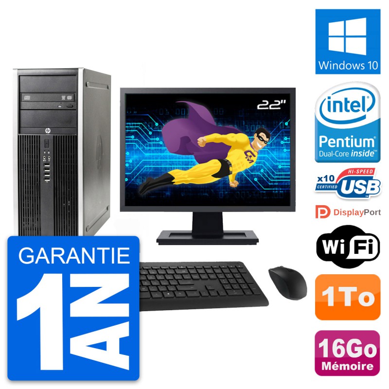 PC Tour HP 8300 Elite - Intel Pentium Dual-Core G630 2.7 Ghz (3 Mo) - 16 Go DDR3 - Disque Dur 3,5" 1 To - Graveur DVD - Clef Wifi USB - Windows 10 - Livré avec Ecran 22" + clavier + souris (Marques et modèles variables) - Garantie 1 an.