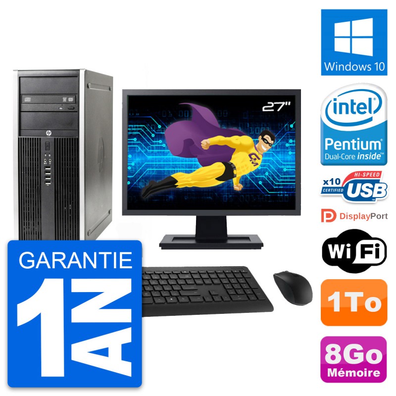 PC Tour HP 8300 Elite - Intel Pentium Dual-Core G630 2.7 Ghz (3 Mo) - 8 Go DDR3 - Disque Dur 3,5" 1 To - Graveur DVD - Clef Wifi USB - Windows 10 - Livré avec Ecran 27" + clavier + souris (Marques et modèles variables) - Garantie 1 an.