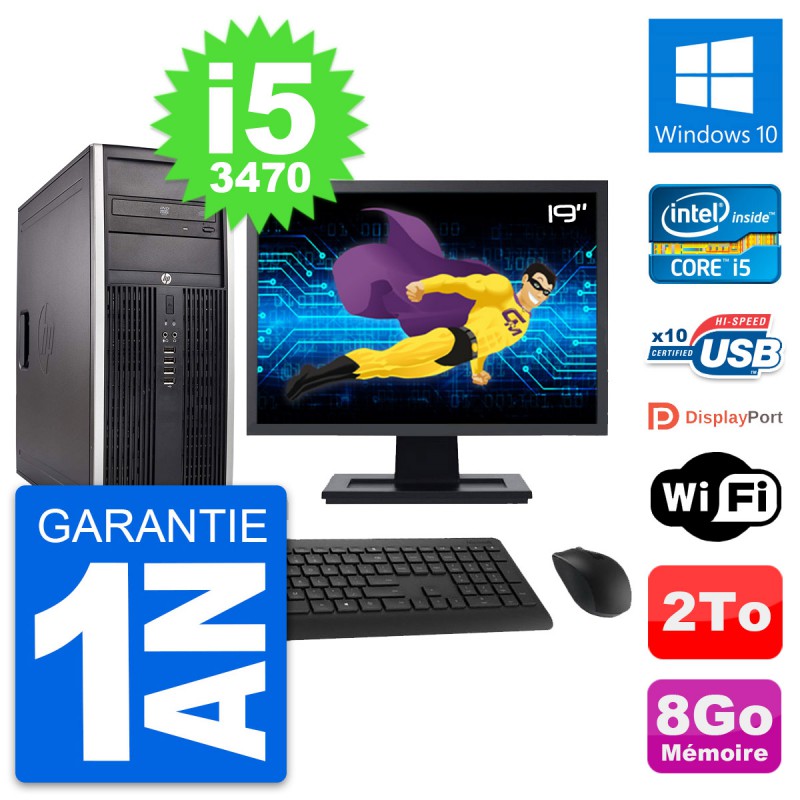 PC Tour HP Elite 8300 Ecran 19" Intel i5-3470 RAM 8Go Disque 2To Windows 10 Wifi