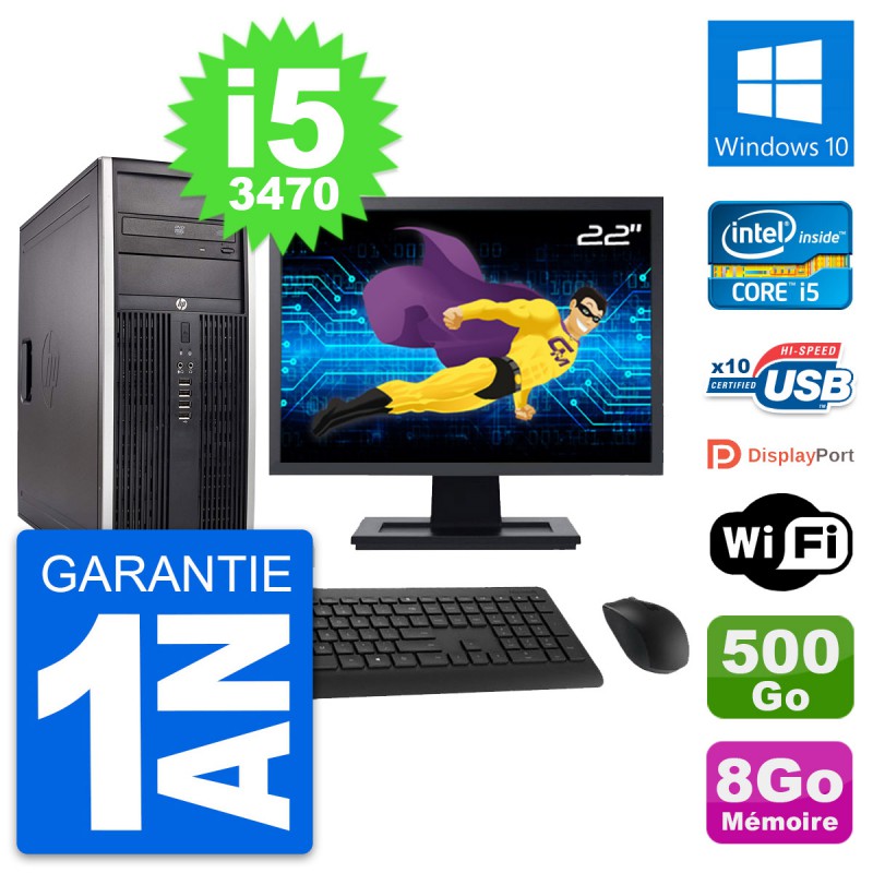 PC Tour HP 8300 Ecran 22" Intel i5-3470 RAM 8Go Disque Dur 500Go Windows 10 Wifi