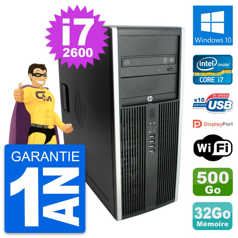 PC Tour HP 8300 Elite - Intel Core i7-2600 3.4 Ghz (8 Mo) - 32 Go DDR3 - Disque Dur 3,5" 500 Go - Graveur DVD - Clef Wifi USB - Windows 10 - Garantie 1 an.