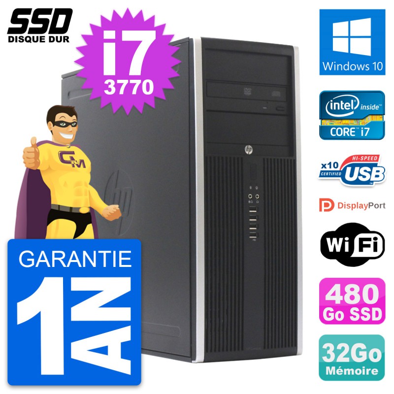 PC Tour HP 8300 Elite - Intel Core i7-3770 3.4 Ghz (8 Mo) - 32 Go DDR3 - Disque Dur SSD 480 Go - Graveur DVD - Clef Wifi USB - Windows 10 - Garantie 1 an.