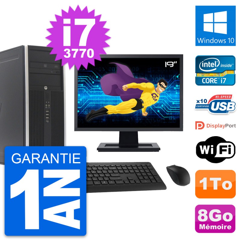 PC Tour HP 8300 Elite - Intel Core i7-3770 3.4 Ghz (8 Mo) - 8 Go DDR3 - Disque Dur 3,5" 1 To - Graveur DVD - Clef Wifi USB - Windows 10 - Livré avec Ecran 19" + clavier + souris (Marques et modèles variables) - Garantie 1 an.