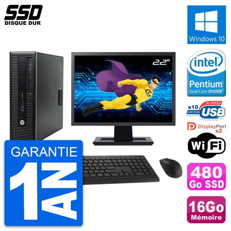 PC HP ProDesk 600 G1 SFF Ecran 22" G3220 RAM 16Go SSD 480Go Windows 10 Wifi